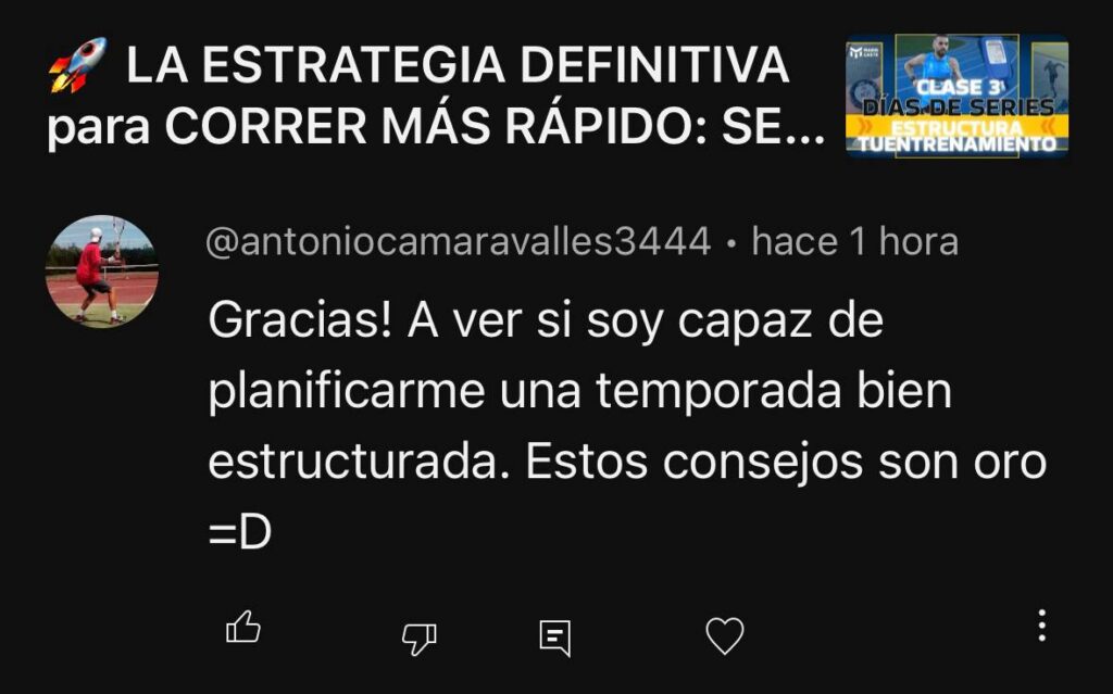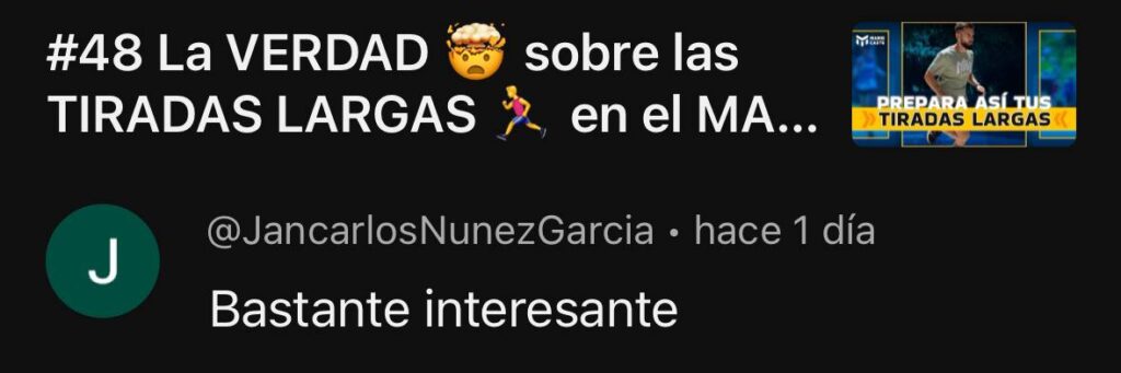 María De La RicaTrustindex verifica que la fuente original de la reseña sea Google. Las responsabilidades del día a día, muchas veces te impiden dedicar todo el tiempo que te gustaría al entreno, pero Mario adapta los entrenos a tu nivel y tiene en cuenta tus circunstancias personales. Te ayuda a no perder el foco y te impulsa a ir un poquito más allá. Y, sin encontrarme en mi mejor momento, y ni si quiera haber entrenado al nivel que me hubiera gustado, aprendí a disfrutar de una carrera, sentirme bien y cruzar la línea de meta de mi Segunda media maratón en tiempo récord, bajando 6 minutos mi anterior marca. Todo un logro que no hubiera sido posible sin la orientación de un buen entrenador que te impulsa y te ayuda a sacar la mejor versión de ti mismo en el running. ¡Muchas gracias, Mario! Vamos a por los siguientes objetivos :) Jose AlbujarTrustindex verifica que la fuente original de la reseña sea Google. Yo tengo varias cosas que agradecerle a Mario. Antes estaba lesionado frecuentemente de los tibiales, por poca fuerza, mala pisada,…lo que tiene ser yn novato y no haber corrido nunca. Iba a ritmos mucho peores y acababa mal todas las carreras. Puedes salir a entrenar tu solo pero no tiene nada que ver. Cuando alguien te lleva y compartes los objetivos con el es mas fácil. La prueba esta en 18 minutos menos la media maratón y 12 minutos menos el 10k en menos de dos años. Hay que ser constante y ganarle a la cabeza muchas veces, pero ayuda mucho tener en tu equipo alguien como el Sara Fernández LópezTrustindex verifica que la fuente original de la reseña sea Google. Cuando empecé venía de una lesión de peroné y Mario adaptó todo completamente a recuperar la lesión bien y poder correr sin dolor. Ahora me siento muy bien, sin dolor al correr y disfrutando de cada km. He podido volver a correr más de 1 hora seguida sin ninguna molestia y para los que nos gusta este deporte eso es maravilloso. Ahora me siento muy bien, con muchas ganas de volver a competir y dar lo mejor de mí. Gracias por todo Mario!! Diego sorianoTrustindex verifica que la fuente original de la reseña sea Google. Buenas tardes, me llamo Diego y entreno con Mario en el Club de Atletismo de Arroyomolinos. Desde hace más o menos un año entreno con Mario, y el mayor cambio que he notado es que es un entrenador muy serio y comprometido con tus objetivos. Gracias a la planificación adecuada para cada entreno, he conseguido en este tiempo en mejorar mis marcas en media maratón y maratón. Sobre todo destacaría en Mario lo bien que adapta los entrenamientos a tus características, tanto físicas como mentales. Juan HolgadoTrustindex verifica que la fuente original de la reseña sea Google. Todo un acierto!!!! Entrenaba y no conseguia progresar, cuando no me dolía una cosa , me dolía otra. Decidí probar con un entrenador que me guiara y no pudé tener mejor suerte que encontrar a Mario. En poco tiempo toda cambio, fuera dolores y he conseguido con él, correr a ritmos impensables para mí! Mi último objetivo, y uno de mis grandes sueños, fue terminar un Maratón y todo gracias al programa de entrenamiento con seguimiento continuo y totalmente adaptado a la vida cotidiana de cada uno. Con tu compromiso y con Mario a tú lado, podrás conseguir cualquier objetivo que te propongas . Muchas Gracias Míster 💪 juan carlos CoinTrustindex verifica que la fuente original de la reseña sea Google. El servicio que ofrece es muy profesional. Una persona muy comprometida con el rendimiento de su atleta, estando atento constantemente de los progresos (tanto a nivel de evolución a nivel de carrera, o en caso de lesión a nivel de recuperación de esta). Se nota que le gusta lo que hace, y lo más importante, que sabe lo que hace, por lo tanto adapta perfectamente el entrenamiento a cada persona y situación personal. David RomeroTrustindex verifica que la fuente original de la reseña sea Google. Llevo entrenando con Mario, varios meses y he conseguido unos resultados que nunca había pensado que llegaría a conseguir. He conseguido una continuidad de entrenos sin lesión ninguna, que me ha hecho llegar a mi mejor versión. Un entrenador 100% recomendable para llegar a tus objetivos Angel DofornoTrustindex verifica que la fuente original de la reseña sea Google. Mario es 110% recomendable, la profesionalidad y la personalización de los entrenamientos para mi son sus pilares junto con la experiencia de años dentro de mundo del atletismo. En mi caso la mejoría no solo fue en tiempos, si no que me lesiono menos o nada. Para mi es más importante que los tiempos. 🔝 Alvaro San MillanTrustindex verifica que la fuente original de la reseña sea Google. Llevo ya tiempo trabajando con Mario y no he dejado de subir el nivel cada año. He aprendido y sigo nutriéndome de todo su conocimiento, ademas de ser una persona fantástica. Siempre esta ahi cuando lo necesitas, en los buenos y malos momentos. Un placer seguir trabajando con el. Christian SanchezTrustindex verifica que la fuente original de la reseña sea Google. Entrene con Mario alrededor de 6 meses para prepararme para un ironman 70.3. Yo no tenia ni idea de el mundo del triathlon y el me guio bastante bien. La verdad que muy satisfecho los entrenos son totalmente personales y los adapta a ti y tu horario (Ex: yo empece a entrenae 6 dias a la semana y debido a un aumento de horas de trabajo solo podia entrenar 5 dias, dicho y hecho… ajusto la intensidad y cambio los entrenos y todo perfecto) En fin, esta de mas decir que el dia de la carrera la complete sin problemas, durante la carrera estaba fisicamente bien, y pude terminar la carrera con fuerzas y sintiendome bien) Muy agradecido con su trabajo lo recomiendo totalmente!